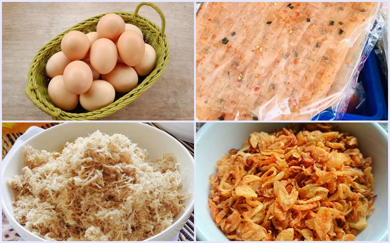 Với cách làm tương tự như món bánh tráng cuốn sốt me. Trứng cút thì sẽ luộc chín, bóc vỏ và cắt đôi. Xoài rửa sạch, gọt vỏ và bào sợi. Đậu phộng rang chín và xát vỏ. Hành tím phi cho vàng đều 2 mặt.