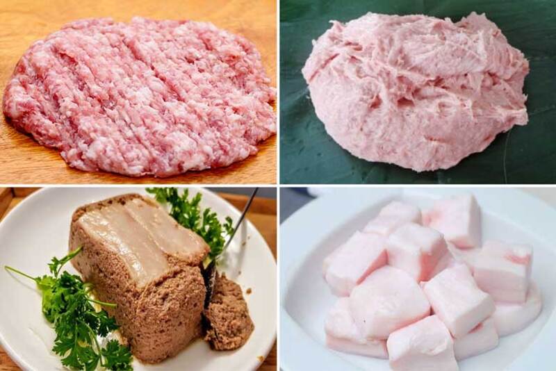 - Thịt heo mua về bạn rửa sạch, để ráo nước rồi tiến hành xay nhuyễn. Mỡ heo cũng cần được rửa sạch và sau khi đã để ráo nước, bạn cắt mỡ thành những hạt lựu nhỏ.