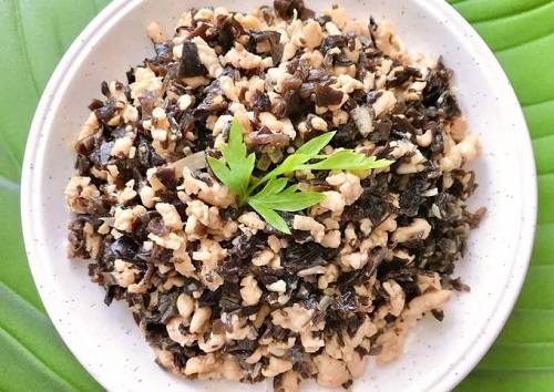 Băm nhuyễn 50gr nấm mèo và trộn chúng với 500gr thịt lợn đã được xay nhuyễn. Nêm thêm 1 muỗng hạt nêm và một ít nước mắm vào hỗn hợp và khuấy đều. Tiếp theo, rửa sạch hành lá và cắt nhỏ phần đầu hành và phần lá, để riêng.